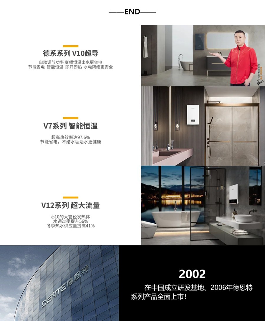 德恩特品牌旗下涵蓋即熱式電熱水器,速熱式電熱水器,快熱式電熱水器品牌和凈水機(jī)等